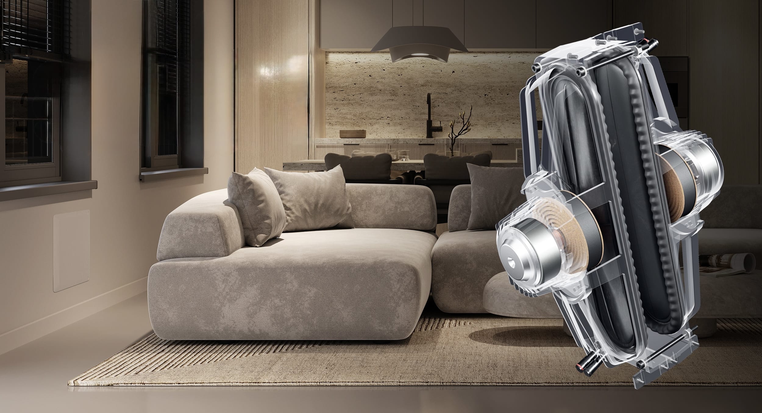 überlegene Klangqualität, Technologien aus höheren Serien, unkomplizierte Installation sowie ein rahmenloses Micro-Perf-Gitter für eine äußerst dezente, architektonisch elegante Optik.